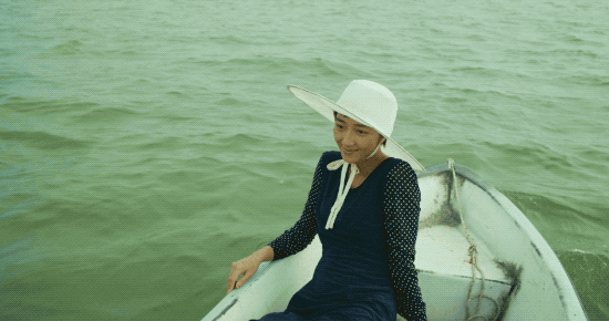 一條三步之長、一步之寬的小船,他與她各坐兩端。日光之下,湖水是藍綠的,臉上的曬斑清晰可見。