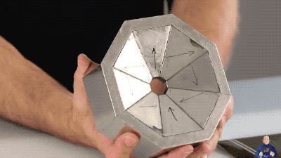 實際上並不是這樣。如果讓幾塊磁體旋轉排布,反而能夠在一面能到更強的磁場。當然,這背後的代價就是,另一面的磁場減弱了。這就是哈爾巴赫陣列的邏輯。