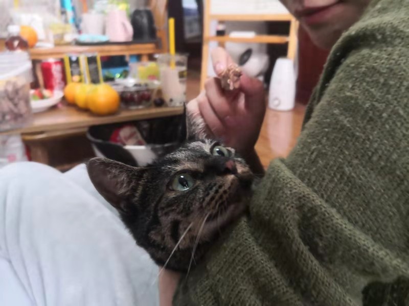 海膽,大模大樣地叼走了桃桃的凍幹。