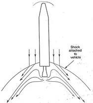 當火箭飛行速度超過音速時候,會形成兩個激波結構。一個在彈體錐形頂部,一個在尾流前部,剛開始彈體激波與尾流激波分離,當飛行高度變高以後,兩者混合,從而使得火箭尾流場變大,形成一個巨大的錐形部位。