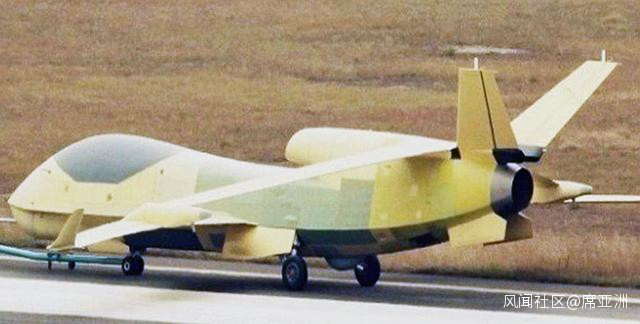 它右側這架可能是成飛“雲影”無人機,這是一種類似通用原子能公司“復仇者”無人機的噴氣式察打一體無人機,該機有機內彈艙,能夠攜帶一定數量的武器。