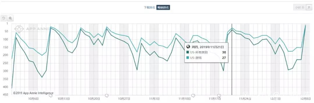 FGO國服暢銷榜走勢:11月最好成績是20名左右