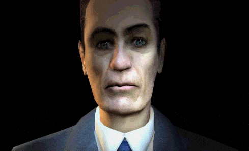 加布·紐維爾(G 胖)首先搬上屏幕的,是一段挑戰人物臉部渲染技術的影像。《半衰期》系列經典角色 G-Man 在黑幕前,從不同角度做着各種各樣的表情。甚至還用中文唸了一段台詞,暗示主角戈登·弗里曼即將回歸。之後下一段演示則同樣帶有炫技色彩:用逐步拆散一個物體向觀眾展現其先進的物理效果。