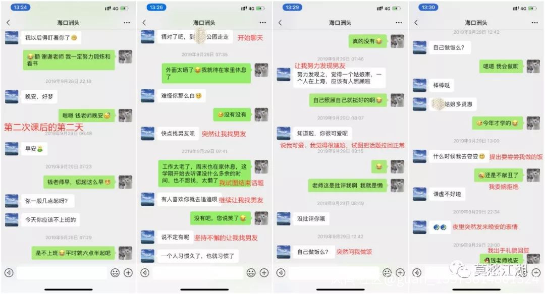 可慢慢的,錢逢勝開始跟小文聊一些“不太像是老師跟學生説的話”,比如: