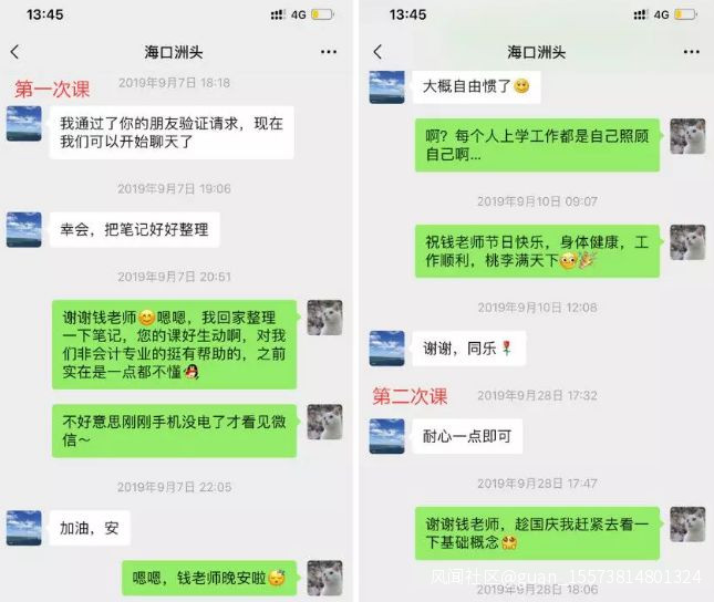 剛加上微信時,錢逢勝還只是跟小文聊聊學習,會叮囑她:“把筆記好好整理”,“耐心一點就能學好”。