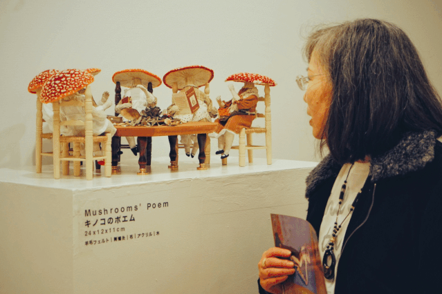 在那次個展上,有一個穿着打扮很精緻的女士看得特別認真,她看完後走到我面前説,她是在東京代官山地區開料理店的,她會到世界各地去找蘑菇,然後空運回她的店裏,做成料理給她的客人們吃。她還參加了一個組織,叫“蘑菇女子會”。她們會定期舉辦一些下午茶活動,只有女生可以參加。大家會坐在一起談論喜歡蘑菇的那種心情,還會時不時地展示一些自己的新的蘑菇收藏。我當時聽完以後覺得太好笑了,我也好想參加呀。