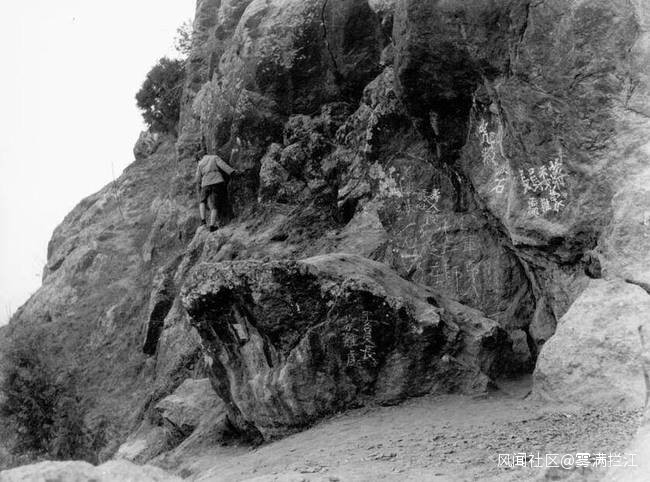 1936年12月,西安事變結束後,國民黨軍重新佔領西安,此照片為國民黨宣傳人員第一時間拍攝了蔣介石被扣留的山崖,山崖上留下了國民黨軍政人員所書寫的“蔣委員長蒙難處”。是西安事變後的第一現場照片。