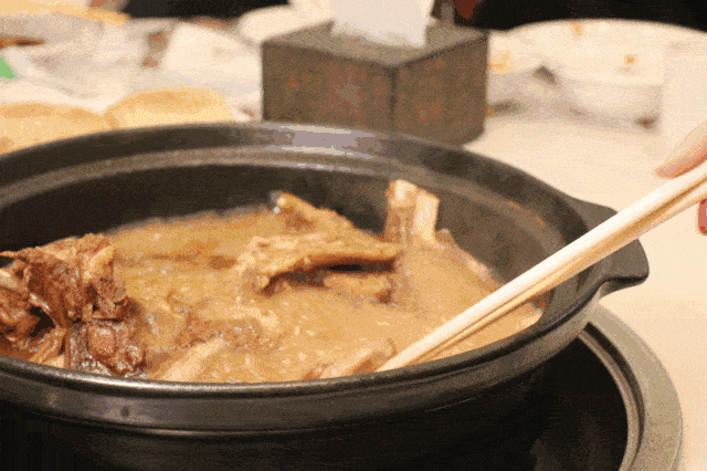 肉隨煮隨吃,一口比一口軟爛入味,頃刻之間,一鍋肉就剩一把骨頭啦。