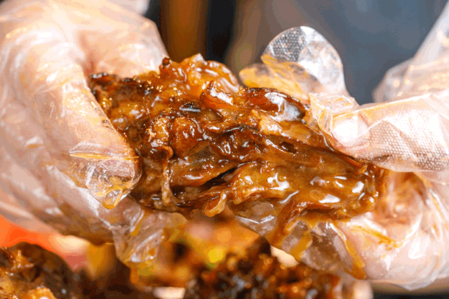 烤羊蠍子,是“羊蠍子之父”蘇東坡發現的元祖吃法,先將羊蠍子煮熟,以黃酒醃漬之後,再加以烤制。