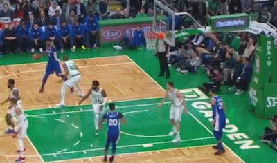 凱爾特人隊年輕而有紀律,一旦在防守上將他遏制,年輕人就戒除了對恩比德的恐懼感。杰倫·布朗甚至曾對恩比德完成這樣的劈扣,儘管距離有點遠。