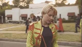 妮可跑到馬路中間,彎下腰,為他繫上鞋帶。