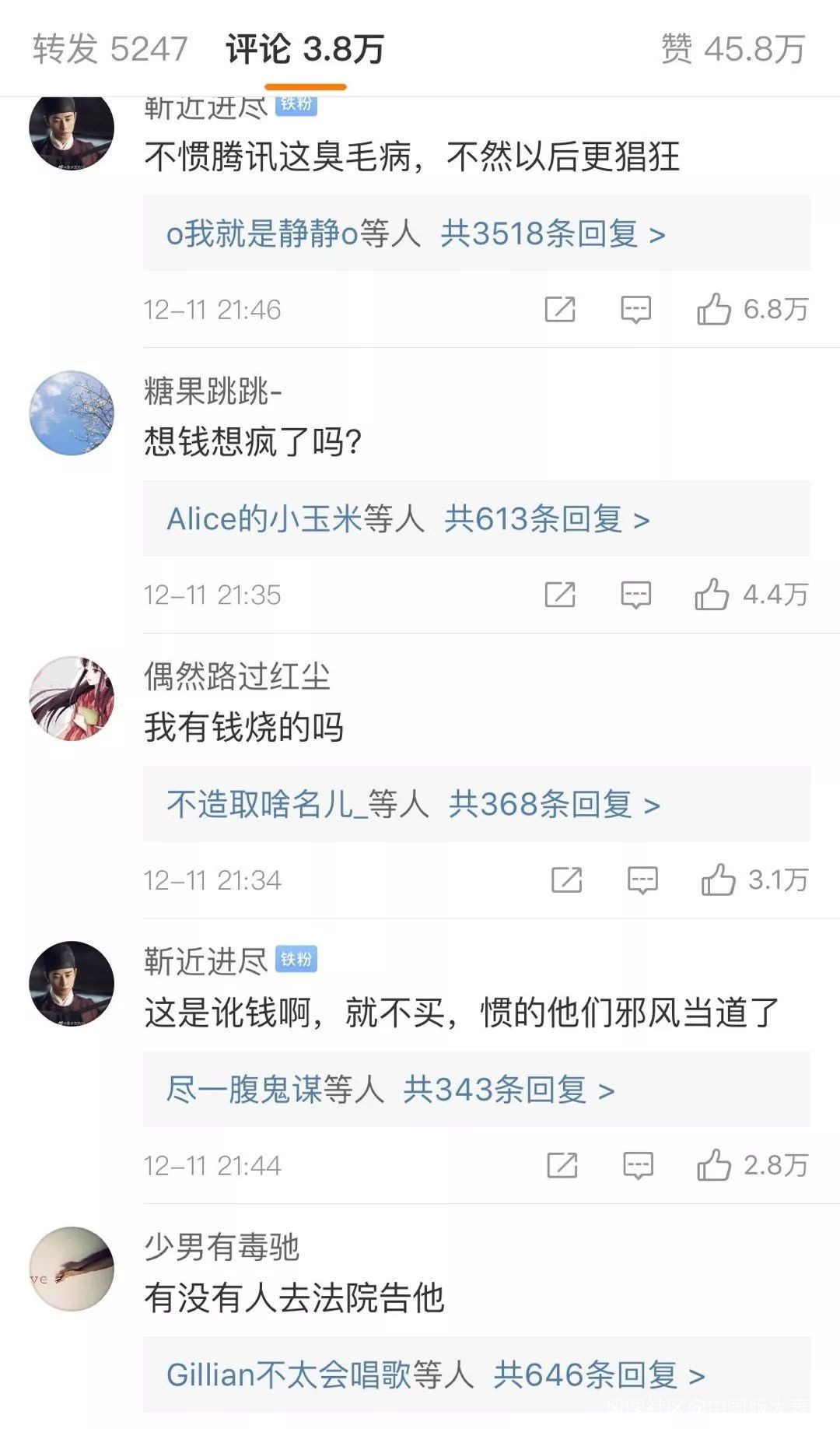 事實上,這不是騰訊第一次這樣操作了。今年暑期大熱的《陳情令》也是如此,花錢成為SVIP就能提前解鎖大結局。當時,這一操作也曾引來罵聲一片,在騰訊視頻官微下面點贊最高的一條回覆為“滾”,對該微博的總評論超過10萬。