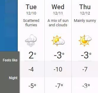 而且,根據Weather Network的報道,疑似受這股冷空氣影響,多倫多氣温也隨之下降,到週三體感温度將下降至-10°C。