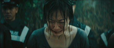 大雨磅礴,雨點毫無遮蔽地打在李維傑一家人身上,拉韞在傘下戴着墨鏡神色冷峻,棺材被打開的那一刻時間彷彿被無限拉長,當發現裏面並沒有男孩的屍體時,雨水打到拉韞的帽檐上,警戒線外村民的抗議終於傳入,眾人突破守衞,一切失控。看這場大雨裏的亂局,畫外的觀眾難免產生一種真相和罪惡都會隨雨水流去之感。