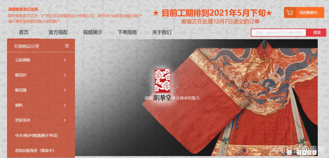 漢服高端品牌明華堂工期已經排到2021年5月下旬