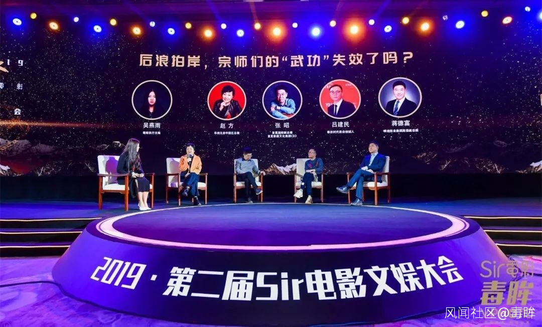 在13日舉辦的“後浪拍岸 2019 Sir電影文娛大會”上,毒眸和Sir電影共同舉辦了題為“後浪拍岸,宗師們的‘武功’失效了嗎?”的圓桌論壇,邀請到華納兄弟中國區總裁趙方、復星國際副總裁、復星影視文化集團CEO 張昭、春秋時代董事長呂建民和博納影業集團高級副總裁蔣德富一同討論這樣一個議題。
