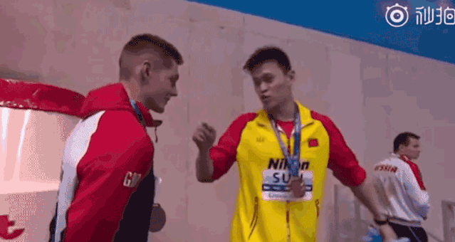 今年7月23日,在孫楊奪得200米自由泳金牌之後,老對手霍頓拒絕和孫楊合影。孫楊在公開場合回應了此事:“你可以不尊重我,但你必須尊重中國!”