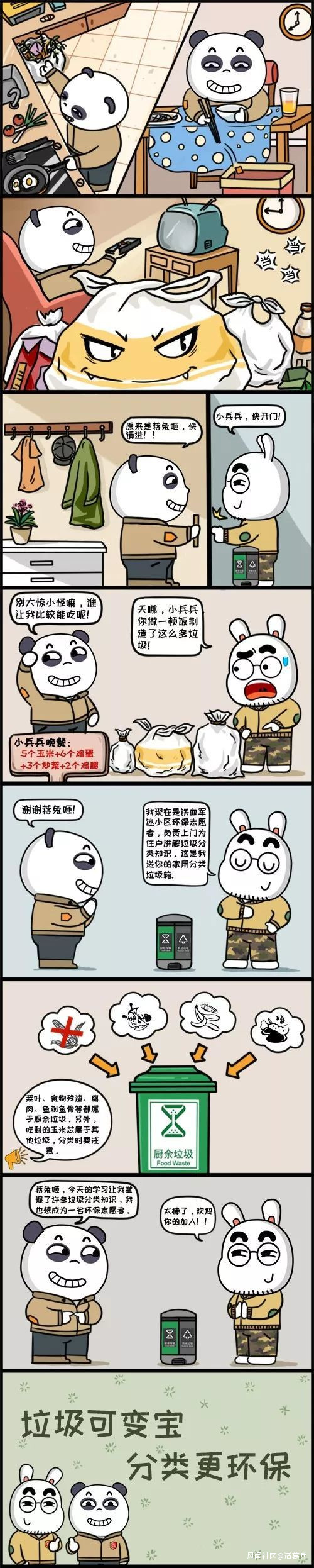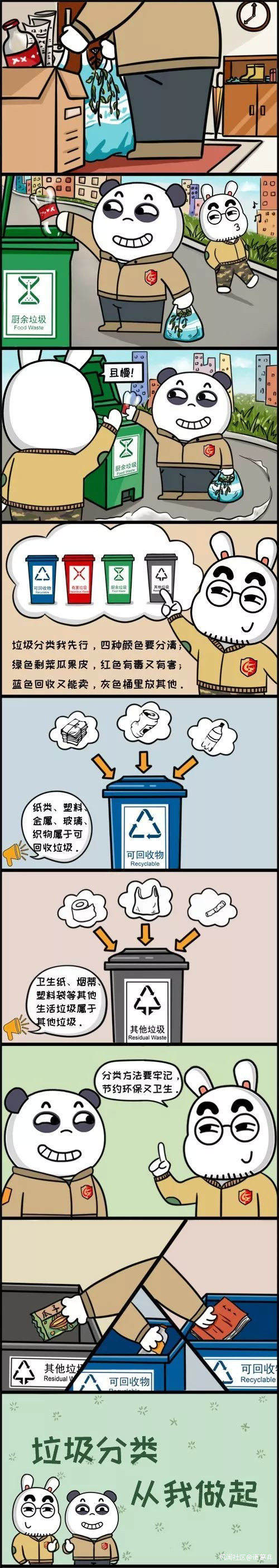 不過這四類垃圾具體到底怎麼分,不專門學習一下,還真是有點難度呢!所以小兵兵和小夥伴蔣兔咂一拍即合,腦洞大開地策劃導演了一部《小兵兵和蔣兔咂的一天》,用漫畫的形式,讓蔣兔咂和小兵兵帶你瞭解一下,在北京如何進行垃圾分類吧!