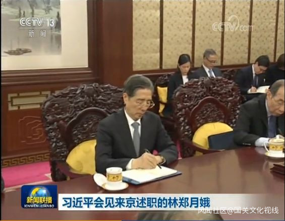《新聞聯播》畫面顯示,這次述職時,習近平坐在長條會議桌的中央,左手側是一同聽取彙報的中央領導,林鄭月娥坐在右手側。