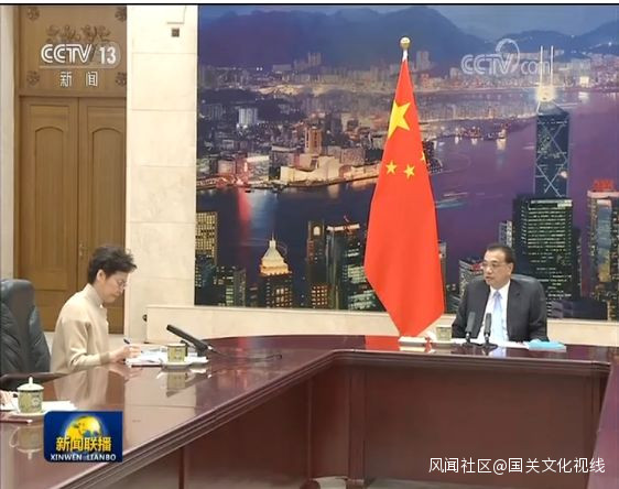 根據畫面顯示,與以往不同,李克強會見林鄭月娥的地點選在了人民大會堂而不是中南海。