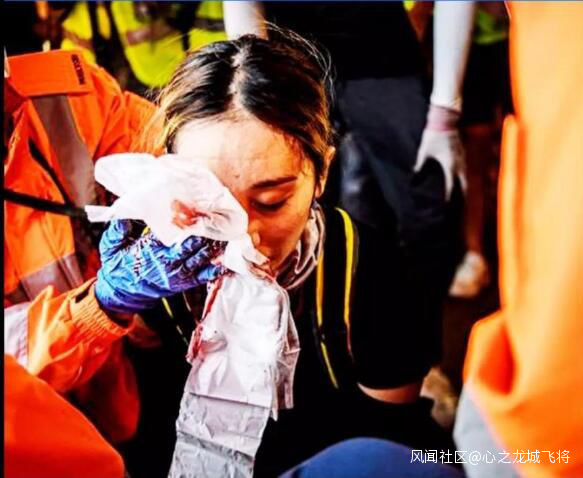 8月11日尖沙咀暴力示威期間,一名女性示威者被硬物擊中面部,導致右眼受傷,眼球爆裂,隨即被送往醫院接受治療。其受傷的照片被上傳到社交媒體上後,示威者的“文宣機器”迅速運轉,在沒有任何根據的情況下宣稱“爆眼女”是被警察發射的布袋彈擊中。