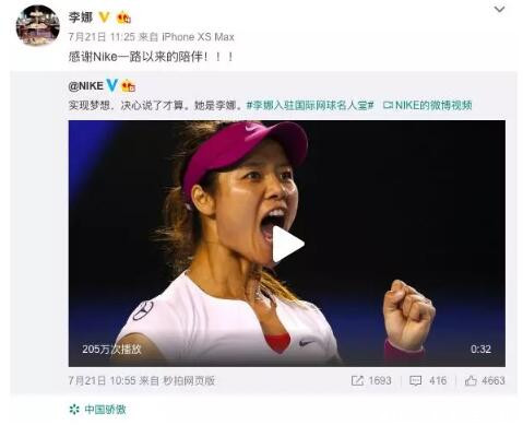 比如李娜,她給自己構建的是一個獨自上場的形象。離開體制,自組團隊,四處征戰,兩奪大滿貫,個性上主張我的世界我做主。那李娜這樣的人設輸出了哪些價值?我們除了從粉絲的喜愛,網球名人堂亞洲第一人等榮譽來評判外,還可以看看商家們的選擇。