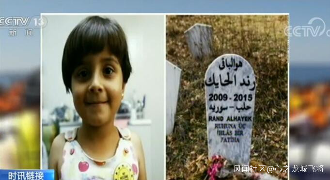 同年曝光的另一組照片中,左邊的小女孩名叫努拉,6歲,她和家人從敍利亞阿勒頗逃出來,經土耳其抵達希臘。而右邊是小女孩蘭德的墓碑,她在抵達希臘後被火車撞倒身亡,去世時年僅6歲。