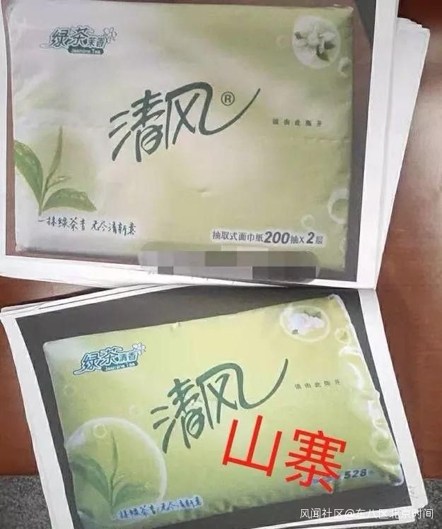 而從外觀上來看,山寨牌“清鳳”紙巾與正版“清風”紙巾僅一橫之差,包裝、字體也全部相同,消費者稍微不注意就會上當。
