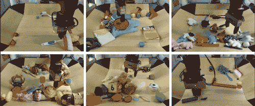 在加州大學伯克利分校的一間實驗室裏,一條機械臂正在翻找着什麼。它撿起一個紅色的碗,並用碗把一個藍色的烤箱手套往右輕推了幾釐米。它扔掉了碗,撿起了一個空的塑料噴瓶,隨後又掂量了一番一本書的質量和外形。在連續多天不休不眠的訓練後,這個機器人開始熟悉這些陌生物品,以及怎麼和它們“玩”。