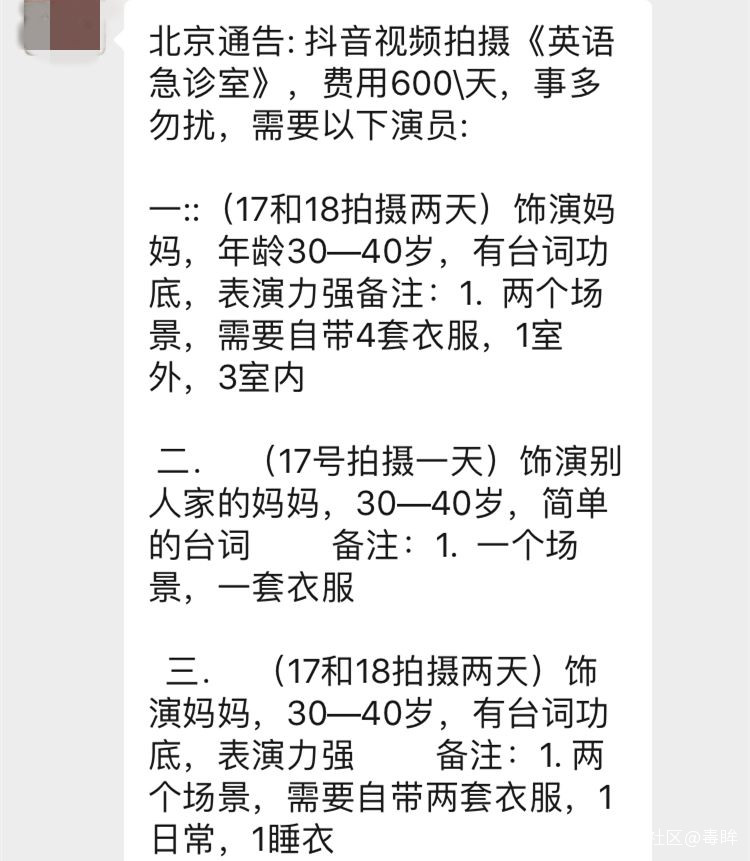 正是由於短視頻內容拍攝門檻較低,加上視頻本身的廣告性質,不止一位業內人士告訴毒眸,一條小説劇情類短視頻廣告的平均成本並不好計算。“看客户想拍成什麼樣吧。”有廣告商表示,場地和服化道的精良程度還有演員的咖位都會影響成本,“小演員可能幾百塊,大演員一千兩千三千五千,甚至到幾萬都有,我覺得沒有一個標準。”