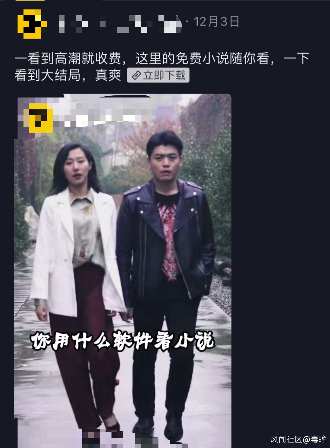 “去年抖音開始全面商業化之後,把現在的信息流廣告上升了一個新的台階。”業內人士告訴毒眸,早期的小説App短視頻廣告,形式比較簡單,更多的是兩個人在一起交流,用嘮家常的形式,説出“我在XX平台看的小説是免費的,有些時候還能賺錢”等對話,以達到直接安利的效果。