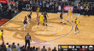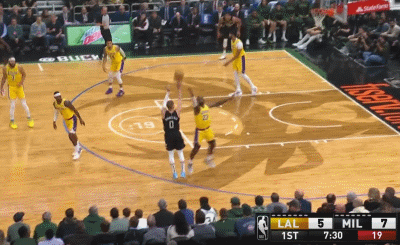 我曾在這場比賽之前寫了前瞻《湖人戰雄鹿,只等泰坦尼克撞冰山》,對比了兩隊各方面的實力,其中雄鹿在得分、籃板兩項都列全聯盟第一,三分球出手和命中數都列第三,由此説明雄鹿陣容更加整齊。在《字母和小卡終於要打一架了》裏面,更是分析了大洛佩斯今年如何承擔更多護筐任務,讓雄鹿的防守由外到內,層次豐富。這場比賽,可以多次看到雄鹿守護三秒區的效果。