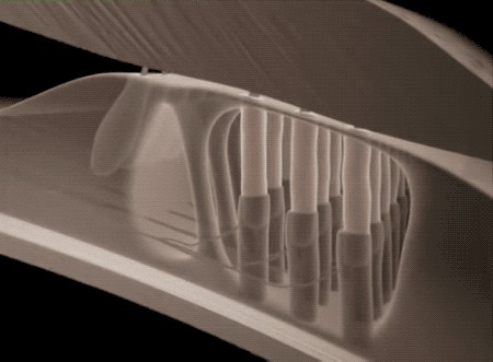 原來,毛細胞上方擦着耳蝸蓋膜。聲音傳來的時候,毛細胞的小毛就這樣被壓在耳蝸蓋膜上摩擦摩擦——