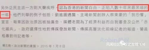 ● 政治方面,書中用港大2016年的調查圖表,説明香港市民對特區政府的管制現狀“不太滿意”和“非常不滿意”的比率達到69.4%。還放了一篇形容香港的“新聞自由受到打壓”的評論節錄。