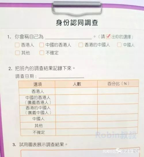 例如下面這個調查表,名義上是做身份調查,但實際操作中卻會使一些學生為了避免不合羣或受到排擠而做出違心選擇,變相強化“本土意識”,真是滿滿的套路。
