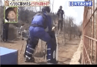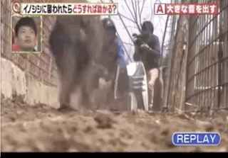 熱愛鑽研的日本人還專門出過一期節目,選擇了幾種方式看看人們碰到野豬的時候,這些方式會不會管用。