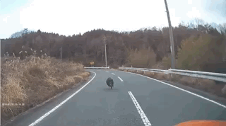 有一位日本網友曾經用他的行車記錄儀拍到了這樣一個視頻:這位網友開車行駛在路上,突然對面衝過來了一頭“剎不住”車的野豬。