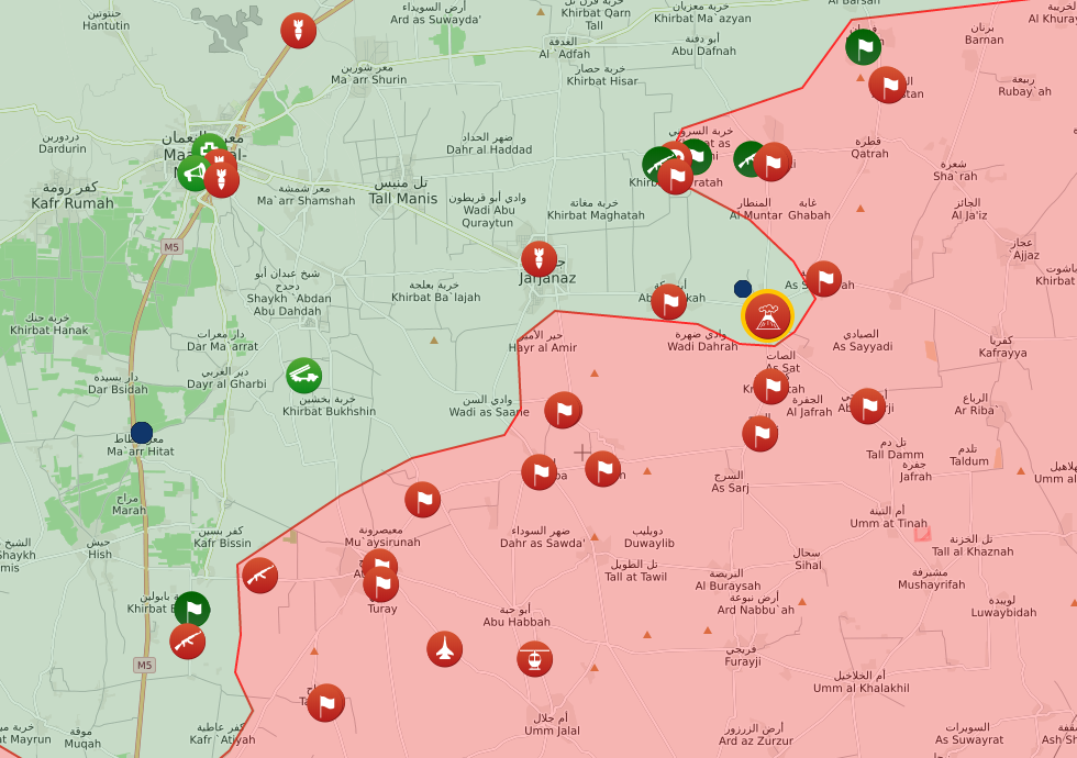 在俄羅斯的一百多架次的空襲下,敍利亞阿拉伯陸軍第5軍和第25特種師(前猛虎部隊,現在外號猛虎部隊)對聖戰組織的築壘地域發動一次大規模攻擊後,成功佔領了伊德利卜東南部的十幾個據點和村莊。