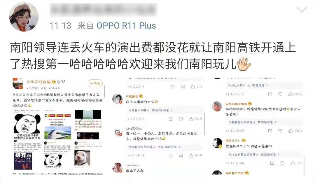 因此當時有南陽的小夥伴就説了,南陽領導連丟火車的演出費都沒花,就讓南陽高鐵開通上了熱搜,真的是太好笑了。