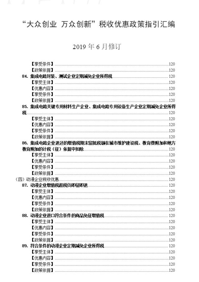 89條税收優惠政策