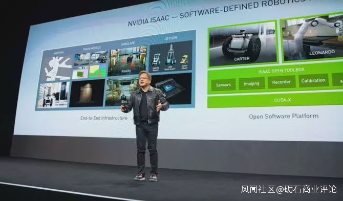 現場,NVIDIA也給我們展示了會賣萌的Leonardo物體操縱機器人。ISAAC SDK是為其提供模擬仿真和訓練的平台,包含多種預訓練模型以及多種參考應用樣例。使用Isaac SDK訓練機器人並將所生成的軟件部署到在現實世界中運行的真實機器人中,有望大大加快機器人的開發速度,從而實現綜合數據的訓練。而通過模擬和真實世界的學習,Leonardo學會了如何遵守物理規則,對此,黃仁勳表示,現在技術已經進入了一個機器可以實時理解人類語言的AI新時代。