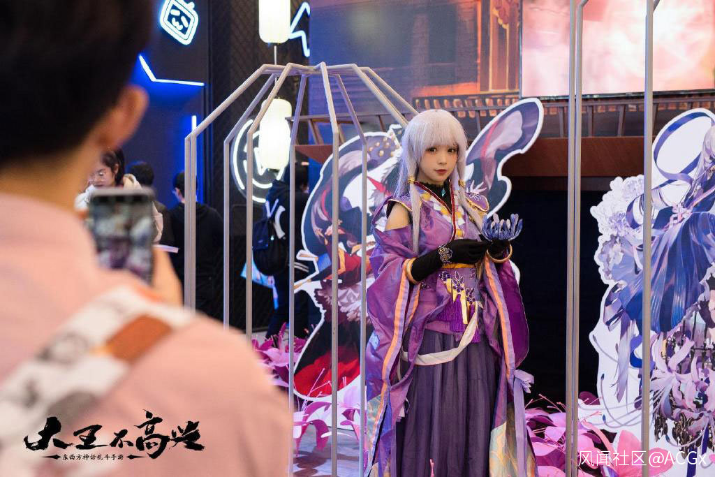 即將於明年1月9日全平台公測的《大王不高興》則在現場還原了遊戲中奈何橋的彼岸花海,精美的場景加上美麗的孟婆coser,吸引了眾多過往玩家的駐足圍觀。