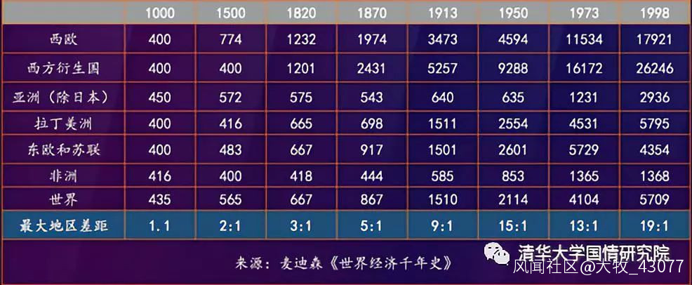 表. 世界各地區人均GDP及差距(1990年國際元)