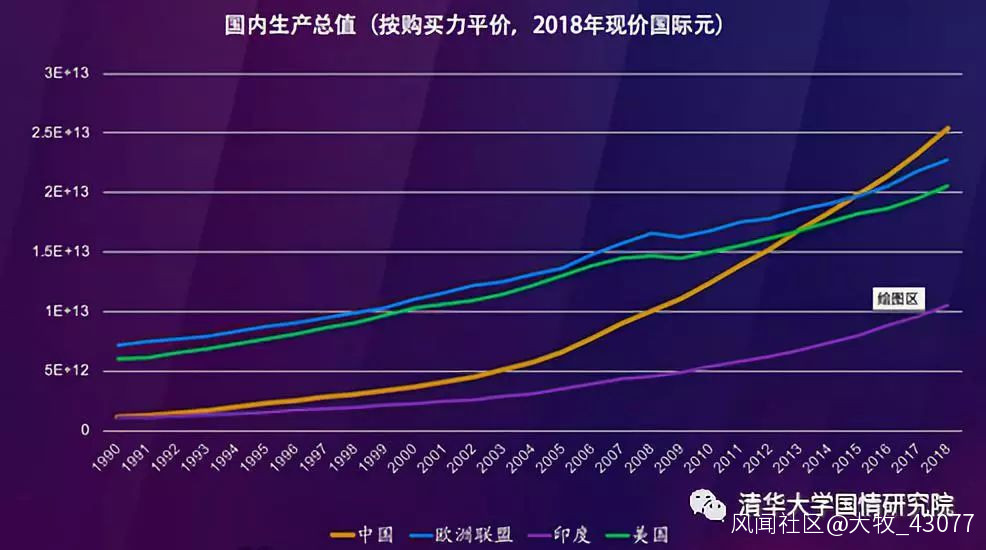 按照匯率計算,中國的經濟總量還沒有超過美國,但是按預測,可以在十年左右的時間趕上美國。如果按照購買力平價,即貨幣實際的購買力來計算,我們現在已經超過美國和歐盟了。當然,這僅僅是總量,按人均收入中國還在世界排名60名左右。