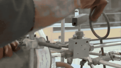 氣體離心法是這樣操作的:鈾的化合物氣體被輸入後,離心機裏的滾輪就這樣轉啊轉。