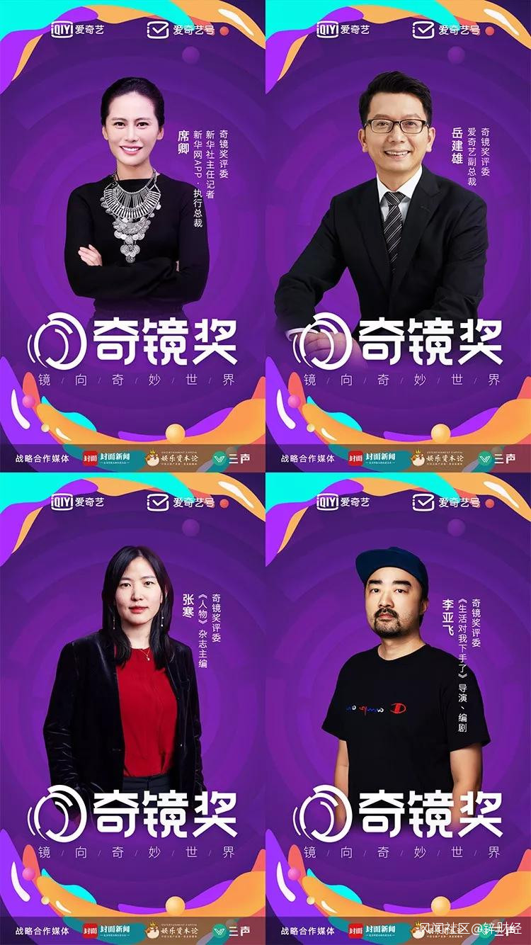 作為針對優秀短視頻創作者的評選活動,奇鏡獎希望能從愛奇藝號內容生態中篩選優質短視頻作品和優秀創作者,真正樹立短視頻行業標杆。為此,奇鏡獎邀請了著名導演、編劇、製片人陸川,著名紀錄片導演範儉,中國內地影視演員、中戲教師劉天池,新華社主任記者、新華網APP執行總裁席卿,《生活對我下手了》導演、編劇李亞飛,《人物》雜誌主編張寒、愛奇藝副總裁嶽建雄共同組成專業評審團,以專業電影和紀錄片導演、演員、媒體人、行業專家等多維度對參賽作品進行審評,力求以客觀、多元的視角甄選2019年度有突出表現的優秀創作者和年度優質短視頻作品。