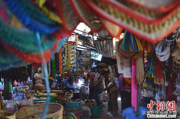 圖為緬甸蒲甘集市內,人們挑選商品。中新社記者 繆超 攝