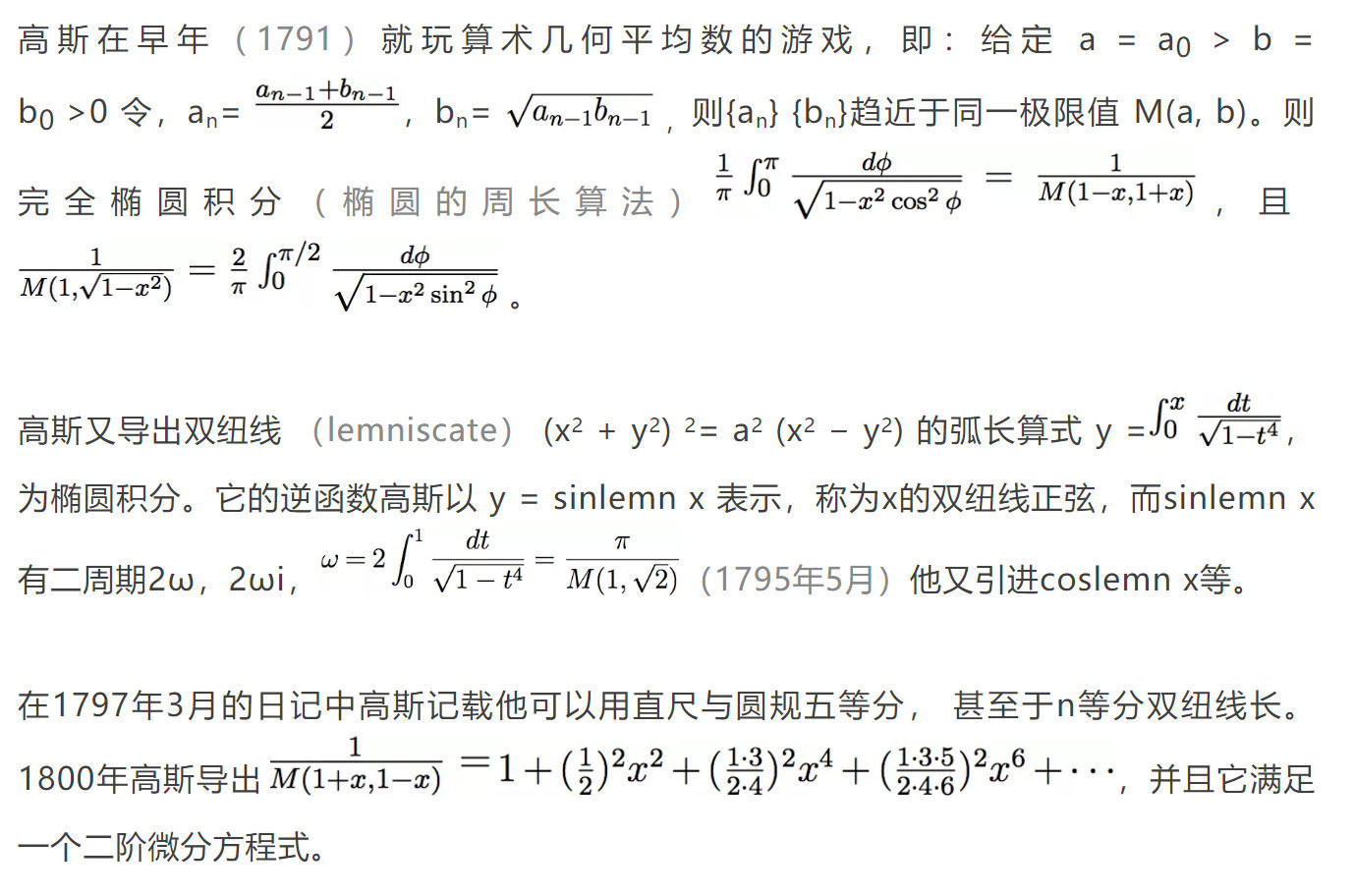 從這些看得出高斯對橢圓函數是做過深入研究的。高斯可能有意把橢圓函數的全部理論完整地做出後再發表,否則不公開它。高斯所寫有關橢圓積分的內容只有在他1818年發表的論文“Secular Perturbations”中可以見到。
