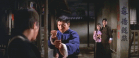 所以到《精武門》,主導武打場面的李小龍就很大程度減少了這樣的“誇張”,至少不管拳腳還是武器,都用一定的現實依據。