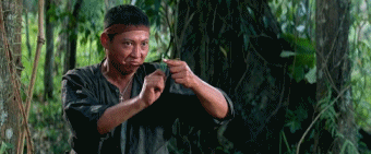 其實這來自他去菲律賓看景時,發現當地村民小孩玩椰子葉,結果真的一撕就能飛出去,雖不至於“殺人”,但葉子的速度和鋭利讓他印象深刻,所以拍出了這場經典。